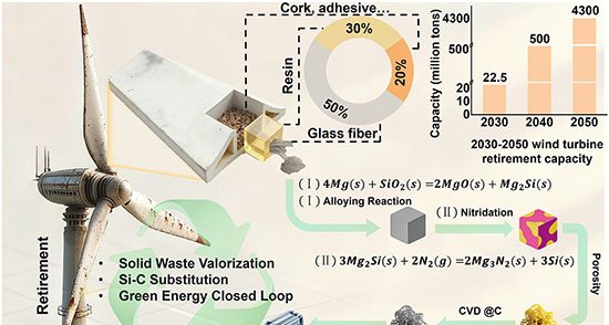 Lâminas de turbinas eólicas aposentadas viram anodos avançados para baterias de íon-lítio