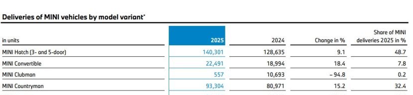 Mesmo em um segmento cada vez menor, o MINI Convertible registrou 22.491 unidades, avanço de 18,4% sobre 2024. Propostas para um sucessor elétrico (código J03) em Oxford, inicialmente previsto para 2027, também foram descartadas pela empresa.
